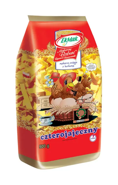 Starannie dobrana mąka pszenna oraz cztery świeże jajka, z dodatkiem naturalnej przyprawy kurkumy. Bez dodatku sztucznych barwników czy konserwantów, Czterojajeczny Wstęga to gwarancja autentycznego smaku i wysokiej jakości.
