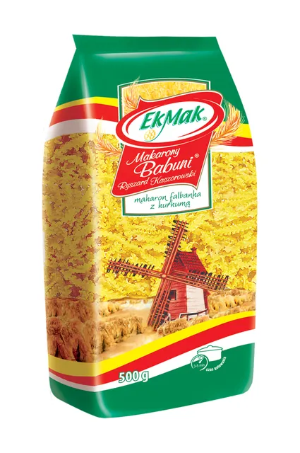 Starannie dobrana mąka pszenna z dodatkiem naturalnej przyprawy kurkumy. Bez dodatku sztucznych barwników czy konserwantów, Falbanka to gwarancja autentycznego smaku i wysokiej jakości.
