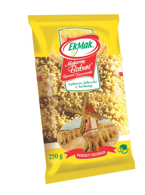 Starannie dobrana mąka pszenna z dodatkiem naturalnej przyprawy kurkumy. Bez dodatku sztucznych barwników czy konserwantów, Kółeczko to gwarancja autentycznego smaku i wysokiej jakości.