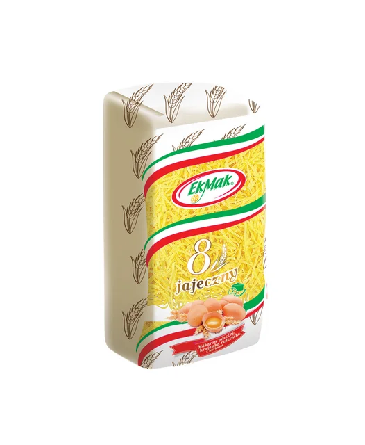 Krajanka 8 jajeczna cechuje się delikatnym smakiem oraz aksamitną, jedwabistą teksturą. Idealnie komponuje się z zupami takimi jak rosół czy pomidorowa.