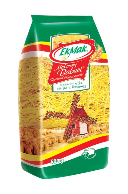 Starannie dobrana mąka pszenna z dodatkiem naturalnej przyprawy kurkumy. Bez dodatku sztucznych barwników czy konserwantów, Nitka Cienka to gwarancja autentycznego smaku i wysokiej jakości.
