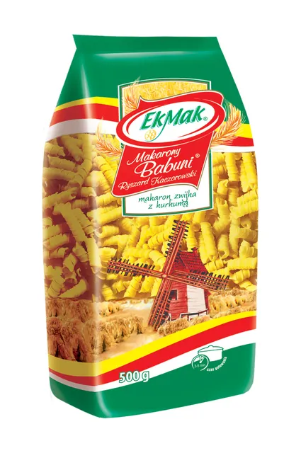 Starannie dobrana mąka pszenna z dodatkiem naturalnej przyprawy kurkumy. Bez dodatku sztucznych barwników czy konserwantów, Zwijka to gwarancja autentycznego smaku i wysokiej jakości.